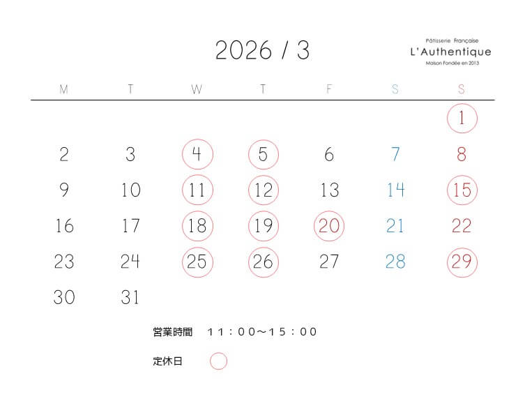 3月のみ営業日・営業時間を変更させていただくこととなりました。